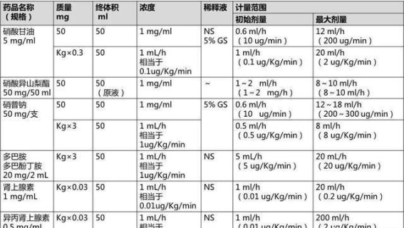 例如,表格中会列出每种药物的标准配比以及对应的泵速调整范围,医生可以根据患者的具体情况,在表格中查找并快速选择合适的药物剂量和泵速。这种方法在临床工作中极大地提高了效率,尤其是在紧急情况下,能够帮助医护人员迅速做出正确决策。