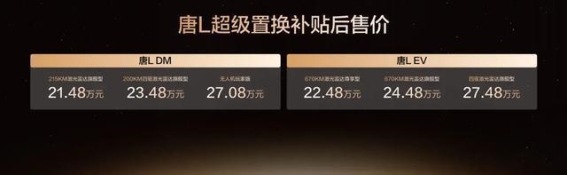 比亚迪在11月21日正式发布了焕新升级的旗舰车型汉L与唐L,同时亮相的还有全新车色和智能OTA系统升级,为用户带来更高层次的科技体验与视觉享受。汉L EV、唐L EV搭载超级e平台全域千伏架构,依托“兆瓦闪充、油电同速”技术,彻底解决了纯电车型的充电焦虑;汉L DM、唐L DM标配第五代DM技术,实现了高性能与高效能的兼顾。这次焕新不仅增加了“车位到车位”的全域领航辅助功能,还带来了全新的车色、智慧生态以及安全配置升级,使产品整体实力得到全面提升。在价格方面,汉L EV三款车型补贴后售价区间为20.48万-26.48万元,汉L DM为19.48万-24.48万元,唐L EV为22.48万-27.48万元,唐L DM为21.48万-27.08万元。比亚迪推出专属尊享礼遇,汉L可享至高5.2万元权益,唐L可享至高4.5万元权益,涵盖超级置换补贴等核心福利,权益有效期至12月31日,进一步提升了用户购车的价值体验。