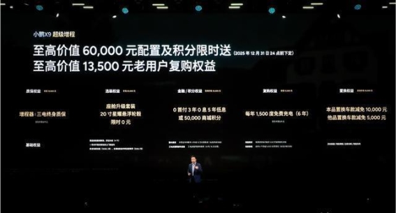 2025年11月20日,广州——小鹏汽车正式发布了全球续航最长的大七座车型——小鹏X9超级增程,这款车的亮相无疑在家庭出行市场掀起了新一轮关注热潮。此次上市的小鹏X9超级增程共推出Max版和Ultra版两种车型,官方指导价分别为30.98万元和32.98万元。与此小鹏汽车还为消费者准备了丰富的购车权益和礼遇,包括增程器与三电系统终身质保、座舱升级套装及20寸星耀悬浮轮毂的限时免费选装权利,以及灵活的金融方案和商城积分奖励。老用户还可享受复购权益,包括每年1500度免费充电、置换优惠等,全面提升购车价值与使用体验。小鹏X9超级增程历时800天开发与,跨越20国330城,以“带着你的全世界,去看全世界”为理念,致力于为全球家庭打造安全、舒适、全场景适用的出行新标杆。