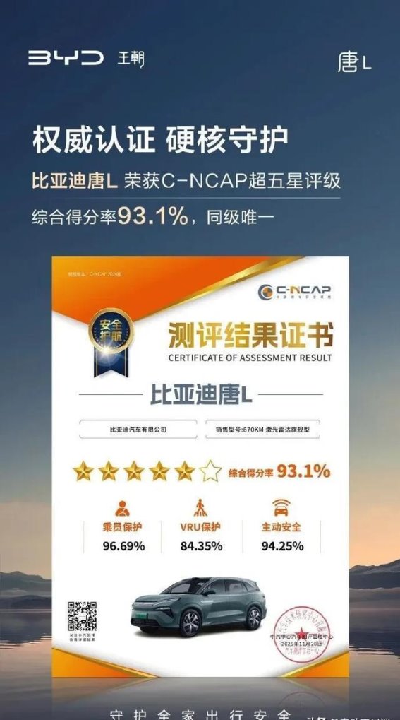 值得注意的是,唐L在C-NCAP获得超五星安全认证,这是同级车型中唯一取得这一评级的车型,含金量极高。王朝网在宣传上力度明显不足,仅是简单公布,没有充分展示这一亮点。比亚迪提出的“安全是最大的豪华”理念在唐L身上得到了验证,但宣传不足让这一优势未能充分转化为市场认知。长续航版本的汉L和唐L推出后,销量增幅仍不明显,仍与9、10月份维持在一万多辆的水平。这表明,汉唐IP若想进一步提升,需要在外观优化和用户体验方面做出更多努力,以满足消费者的期待。