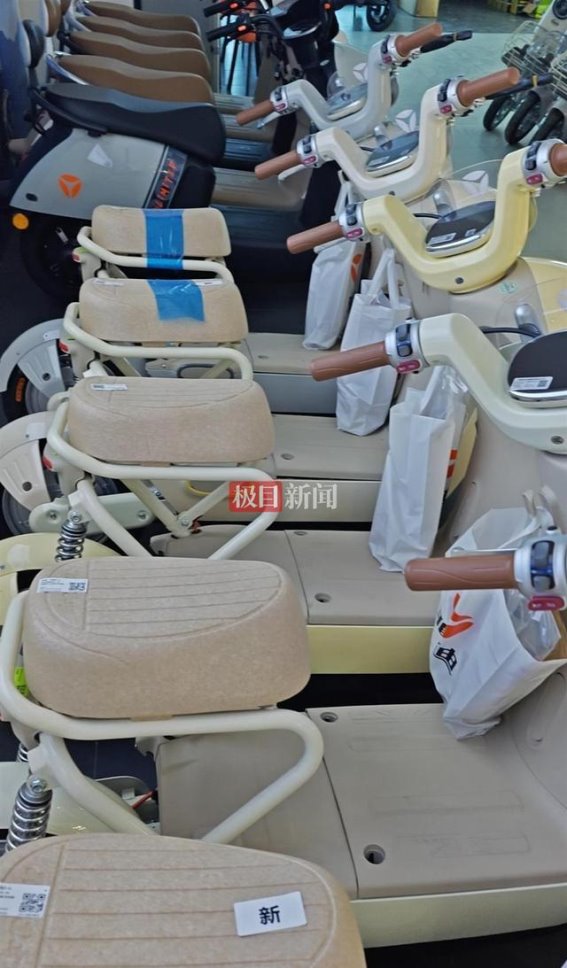 记者注意到,部分新国标车型在承载功能上进行了调整。例如,雅迪的新款国标车仅配置单座坐垫,可拆卸,但没有车筐,仅保留一个挂钩,部分消费者在网络上调侃“骑车还得自带麻袋”。店主们反映,新车吸引了不少围观者,但实际购买的很少,自新车上市以来,销售数量普遍个位数,有的店铺甚至尚未开张销售。显然,车速受限和承载能力不足成为阻碍新车销量的重要因素。