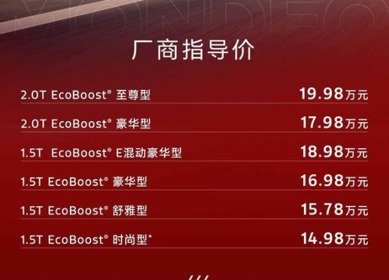 合资燃油车市场又迎来新成员。12月4日,长安福特正式推出了2026款蒙迪欧改款车型,新车共推出6款,其中1.5T车型4款,包括一款混动,2.0T车型2款,售价区间从14.98万到19.98万元,起售价与2025款保持一致。尤其值得关注的是2.0T车型,官方称其为“地表最强2.0T”,最大功率192kW,峰值扭矩408牛米。在之前的试驾中,这台发动机的动力表现让人印象深刻,无论起步还是加速都非常有力。那这款合资燃油车到底值不值得买?又该如何选择配置?下面我们逐一分析。