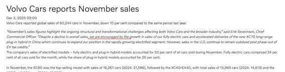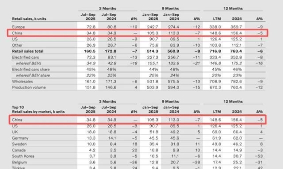 从品牌经营角度看,XC70的上市不仅推动了销量提升,也直接改善了沃尔沃中国的整体经营质量。中国市场在第三季度零售销量达到34800辆,占全球销量超过21.7%,保持最大单一市场地位。随着XC70在四季度的持续放量,中国市场对沃尔沃全球业务的支撑作用愈发明显。在营收方面,第三季度中国市场实现125.78亿瑞典克朗,单车均价达到24.9万元,成为提升整体经营表现的重要支点。更值得注意的是,XC70的平均成交价普遍高于XC60,且消费者更偏好高配版本,这使得沃尔沃在销量提升的也获得了更高质量的营收结构。随着XC70逐渐进入规模化增长阶段,豪华品牌在新能源领域的竞争模式也将迎来变化,过去依赖燃油主销的时代已不再适用,新能源规模化产品将成为豪华品牌未来竞争的主要支撑力量。