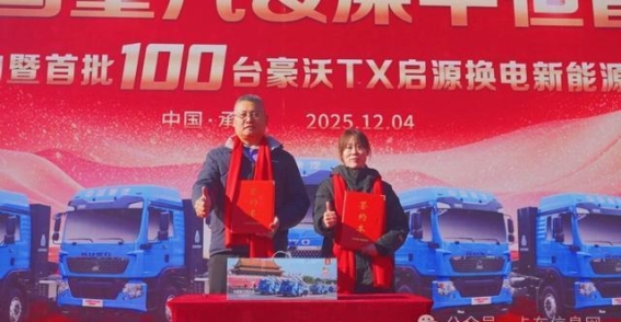 中国重汽豪沃在新能源重卡领域一直处于行业前沿,其推出的豪沃TX新能源牵引车深刻契合砂石料、煤炭运输的使用特点,精准满足用户需求。12月4日,中国重汽与滦平恒昌在承德举行500台战略签约及首批100台TX启源换电新能源牵引车交付仪式。豪沃TX新能源牵引车即将全面投入滦平恒昌的砂石料运输运营,为企业带来高效、安全的运输解决方案。滦平恒昌董事长杨利群表示,自今年3月开始使用豪沃TX新能源牵引车以来,其在沙石料运输中的整体表现优于其他品牌,动力充沛、运营高效,已经成为企业运输车辆的首选。