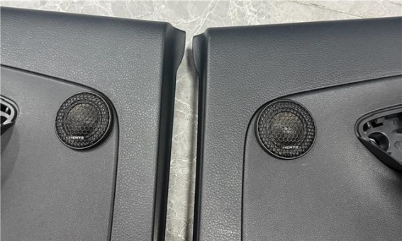 为了保证后排乘客也能享受高质量的音响体验,车主在后门的喇叭选择上也做了精心考量。后门喇叭使用了赫兹的两分频套装喇叭。与前门的喇叭配置类似,后门的中低音单元也安装在车门原位,而高音单元则通过车门内饰板打孔的方式安装。这样既保证了后排乘客能够清晰听到高频音效,又不破坏车内整体的美观。无论是前排还是后排,车主都能享受到极为均衡的音响效果。