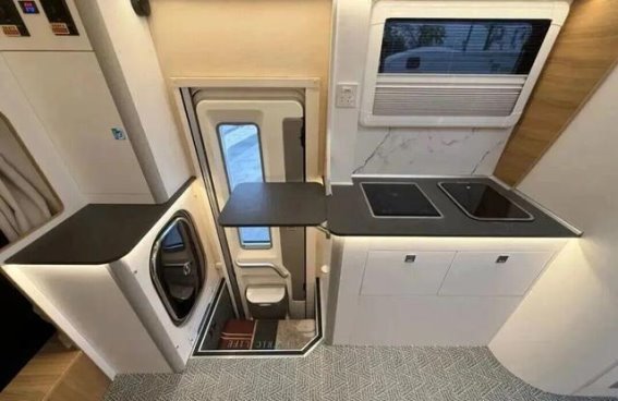 车内的双拓展舱设计为房车带来了宽敞的空间,经过拓展后,车内的空间瞬间变得如同“移动大平层”。这款车能够轻松容纳6人,自如活动,空间的灵活利用最大限度地保障了车主的舒适体验。房车内的每一处细节都体现了威士捷对用户需求的精准把握。