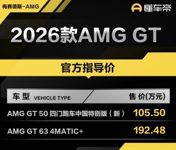 2026款AMG GT 50四门跑车中国特别版的正式上市,标志着梅赛德斯-奔驰在豪华跑车市场的一次重要布局。这款新车的指导价格为105.5万元,作为一款年度改款车型,主要集中在配置方面的优化,延续了现款车型的豪华与运动性能。无论是外观设计、内饰布局,还是动力系统的调校,都表现出AMG一贯的精湛工艺与卓越性能。