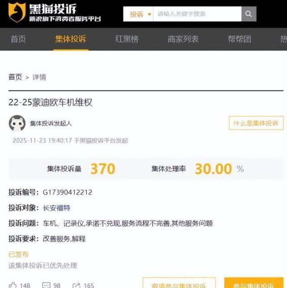 自2025年11月起,长安福特再次成为舆论的焦点,但这一次并非凭借新车的亮眼表现,而是因其车机系统问题引发的大规模车主投诉。从2022款至2025款蒙迪欧车主的集体投诉开始,福特蒙迪欧及锐界L的车主们纷纷在投诉平台上发声,称其车机系统存在严重的卡顿、导航延迟等问题。这些问题不仅影响了日常驾驶的便捷性,更成为了车主们极力抗议的焦点。到2025年12月4日,蒙迪欧车主的投诉已超过370起,且随着更多车主的加入,这一数字还在不断增加。而这场车机危机,也让长安福特迅速跻身了投诉平台的“黑榜”榜首。