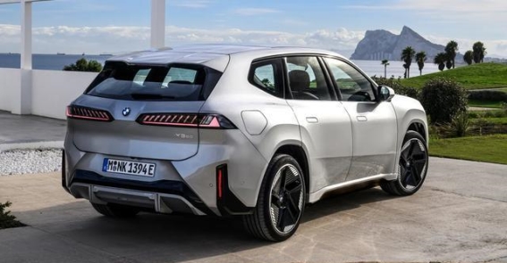 车身方面,iX3相较于上一代X3在设计上更为现代化,具备了跨界风格。车顶的下坠设计、D柱的倒角处理,以及简洁的腰线,都使得整车看起来更加流线型,充满未来感。特别是隐藏式车门把手的加入,使得整车设计更加简洁,体现了新能源车型应有的简洁美学。大尺寸的气动轮毂不仅具有很高的美观性,还通过优化空气动力学效果,降低了行驶中的风阻。车尾的设计也延续了宝马一贯的个性化风格,尾灯采用了扁平化设计,内部则加入了多段式的红色光源,在不亮起时呈现白色,增加了车辆的辨识度。