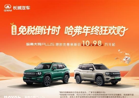 哈弗大狗PLUS的优惠活动时间为2025年12月1日至2025年12月31日,消费者只需通过长城汽车APP或哈弗新车小程序成功下订,即可享受相关优惠。活动期间,订金仅需2000元即可抵扣车款,并且消费者需在2025年12月31日24:00之前完成核销开票手续,确保能够享受到此次优惠活动带来的福利。
