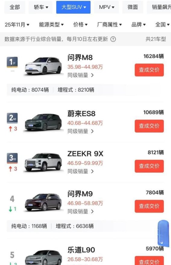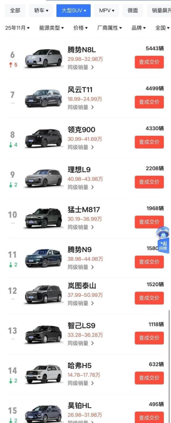 通过对2025年11月新能源大型SUV销量榜单的解读,我们可以看到几个显著的趋势: