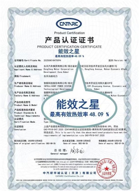 2025年12月,东风汽车再次向全球汽车行业展示了其强大的自主创新实力,尤其在动力技术领域的突破,引起了广泛关注。12月8日,东风汽车自主研发的马赫1.5T混动发动机,凭借其48.09%的最高有效热效率,成功获得“能效之星”认证,成为全球首款突破48%热效率认证的混动汽油发动机。与此东风商用车的龙擎DA12挡变速箱也在2025世界十佳动力系统评选中荣获“第九届世界十佳变速器”奖项。这两项突破性的技术成果,不仅展现了东风汽车在自主动力领域的领先地位,也为其科技创新引领产业升级提供了生动写照。