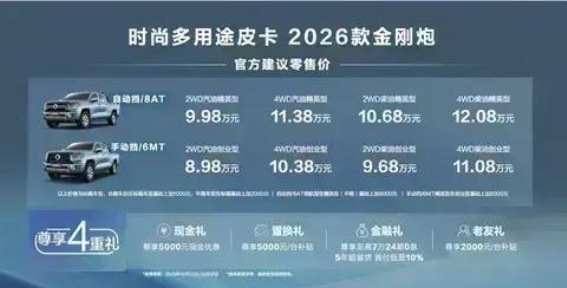 为了回馈消费者,哈弗品牌还推出了丰富的优惠政策。2026款金刚炮购买者将享受四重豪礼,包括5000元现金礼、5000元置换礼、2000元老友礼以及7万24期0息金融补贴。这些优惠无疑减轻了消费者的购车负担,尤其是对于创业者来说,能够以更加优惠的价格获得一辆高性价比的皮卡,无疑是一次难得的机会。