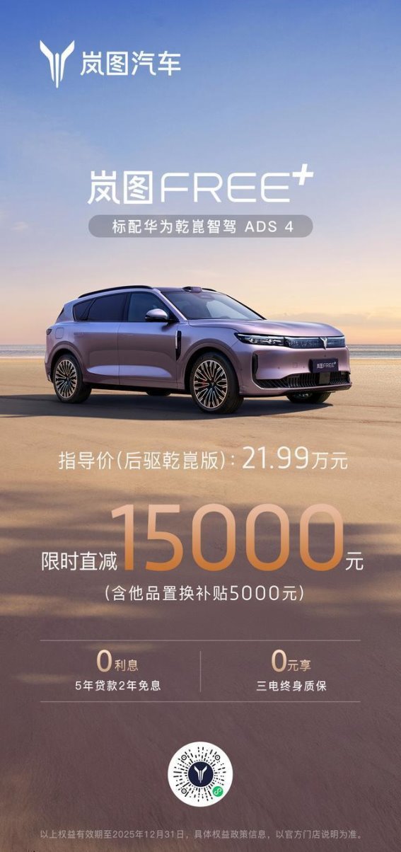 此次活动不仅让岚图FREE+以更低的价格进入市场,更通过赠送高价值配置包,进一步提升了其市场竞争力。消费者可以用更少的预算,体验到更高的配置与更强的智能科技,岚图FREE+无疑为消费者提供了一个极具吸引力的购车机会。