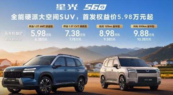 作为五菱银标家族在2025年底的压轴车型,星光560以5.98万元的起售价亮相市场,这一价格直接冲击紧凑型SUV的红海领域。从表面上看,它像是一款要挑战同级对手的性价比利器,但深入分析其设计、动力、配置和市场定位,就会发现五菱依然走着稳妥路线,用低成本与实用性来稳固自身市场地位。星光560的发布,既是五菱SUV布局的试探,也是一次精准的市场收割,目标直指经济型家庭和县城消费者。