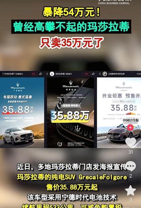 最近,一条关于玛莎拉蒂大幅降价的消息在网络上引起了不小的轰动,这个曾经代表着豪华与尊贵的跑车品牌,如今竟然出现了史无前例的价格下调,让不少消费者感到既惊讶又兴奋。曾经售价在六十万元以上的车型,如今裸车价只要三十五万元,这让原本高不可攀的玛莎拉蒂,瞬间变得普通可及。有人说,这就是“没有卖不出去的东西,只有卖不出去的价格”的最好例证:只要价格合适,再高端的豪车也能卖出去,但背后的代价,却可能是利润大幅缩水和品牌形象受损,这样的取舍是否值得,也引发了热议。
