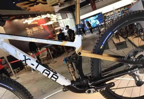 30周年纪念版软尾X-LAB游龙以山野为设计灵感,将自然美学与高端工艺完美融合。车架以雅白大理石纹理为底,流动的线条浑然天成,金箔工艺点缀在车架关键部位与后上叉之上,灵动而霸气。与普通喷涂不同,这些金箔由匠人手工一层层叠刷而成,与大理石纹理自然融合,每一次细节都彰显精湛工艺。车架采用T1100碳纤维材质,使整车轻量且刚性更强,搭配长四连杆(horst link)悬挂结构和FOX FLOAT前后避震系统,无论是轻微颠簸还是大幅冲击,整车都能轻松应对,兼具性能与美感。后避震器设有多档位调节功能,可根据不同路况快速切换压缩阻尼和回弹效果,前叉“Kashima”涂层减少摩擦,骑行顺滑耐用,满足高端越野竞技的需求。