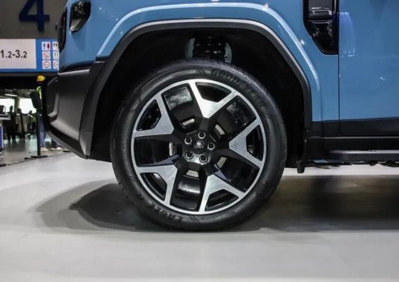 车身侧面线条硬朗,腰线贯穿车门,低窗沿设计的大侧窗提升了车内空间感,让上下比例更为协调。车门配备传统机械式门把手,搭配21英寸五幅双色轮毂,轮胎规格为265/45 R21,整体造型稳重而不失动感。值得注意的是,侧窗后方标注“V27”型号,突显身份与辨识度。侧面造型在硬派风格基础上兼顾实用性,既保证视觉冲击力,也让车内空间利用更合理,体现出旗舰车型对设计与功能的双重考量。