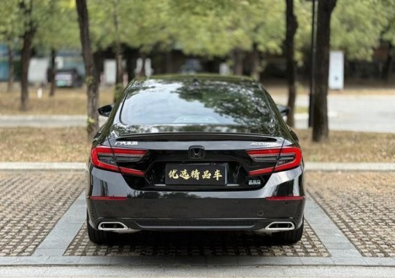 车身的线条依然保持了雅阁一贯的简洁而流畅的风格,整体设计显得大气且富有动感。特别是黑色车身的选用,使得这款车看起来更加稳重且充满力量感,既适合日常家用,也能满足商务场合的需求。车辆的尾部同样延续了雅阁一贯的精致风格,整体设计没有过多冗杂的线条,既简洁又富有现代感。