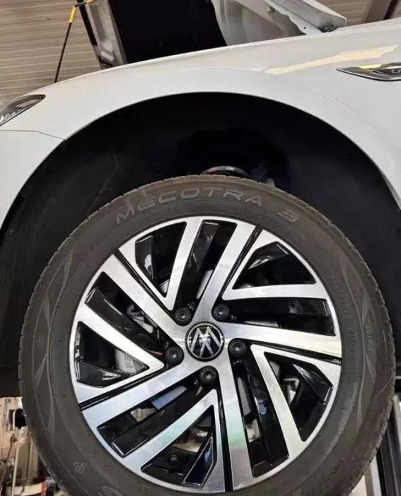 轮胎也是保养中的重点之一,特别是胎压的检查与调节。师傅使用专业工具对轮胎进行了检测,并调整了胎压,确保胎压保持在2.3bar到2.5bar之间。胎压对驾驶安全和燃油经济性都有着直接影响,过高或过低的胎压都可能导致驾驶不稳定,甚至增加轮胎磨损。师傅还检查了轮胎的磨损情况,并清理了轮胎缝隙中的石子,避免这些小物件影响行车安全。
