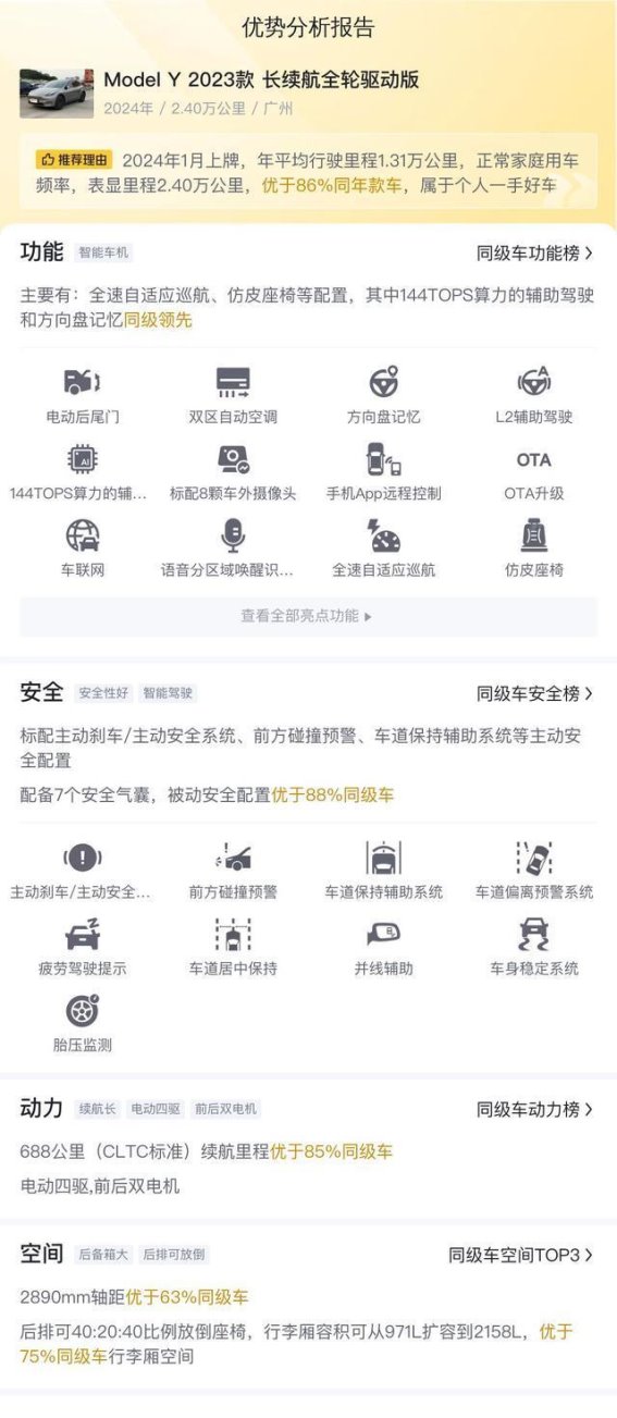 ,特斯拉Model Y作为一款兼具豪华感与实用性的电动SUV,凭借其出色的性能配置、极高的性价比以及优异的保值率,成为了当前市场上的热门选择。对于那些预算有限却又渴望体验电动汽车驾驶乐趣的消费者,这款车无疑提供了一个绝佳的机会。如果您正在寻找一款性能卓越、科技领先且空间宽敞的电动SUV,二手Model Y值得您的关注。