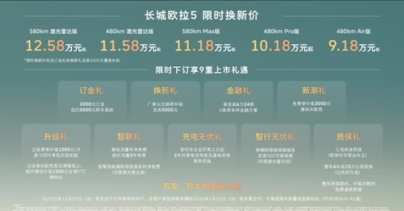 2025年12月16日,长城汽车旗下欧拉品牌全新A级纯电SUV——长城欧拉5正式亮相并开启上市。此次推出的新车共计五款配置,售价区间为9.98万至13.38万元,而限时换新价则从9.18万元起。该车型不仅通过“订金礼”和“换新礼”最高提供5000元的以旧换新补贴,还结合9重上市好礼和购置税补贴等福利,极大地提升了产品的吸引力。这一切都彰显了长城汽车在全球市场布局中的决心,长城欧拉5旨在成为广大年轻用户的理想出行伙伴,帮助他们跨越时间与空间的界限,勇敢追求未来。