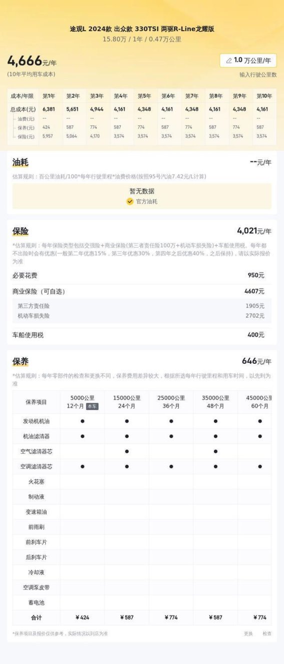 在二手车市场中,途观L 2024款330TSI两驱R-Line龙耀版无疑是一个非常有吸引力的选择。目前,这款车的二手售价为15.8万元,考虑到这辆车的上牌时间仅为2024年7月、行驶里程仅为4700公里,其性价比非常高。与新车相比,二手途观L无论是在价格上还是在车况上都具有一定的优势。车辆的保养状况良好,没有发生过过户,避免了多次过户可能带来的法律和保修风险,进一步提高了其市场价值。