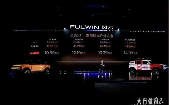 9月17日,风云X3L在成都举行的发布会上正式亮相。起售价10.99万元,风云X3L为消费者提供了四个版本的车型,包括135畅行版、215远行版、215智行版和205四驱高能版,售价从10.99万元到14.99万元不等。与此六款官方改装版车型的发布,也为消费者呈现了方盒子车身的无限可能,彰显了风云X3L的多元化与个性化魅力。