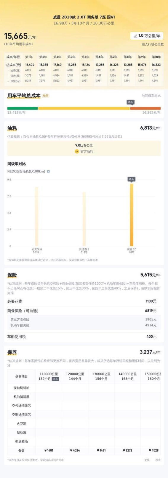 在当前市场上,2018款奔驰威霆的价格区间大致在17.02万元至20.41万元之间,而该车的报价为16.98万元,性价比非常高。从长期用车成本来看,这款车的年均用车成本大约为1.6万元,其中油费约为1.1万元,保险费用为5159元,保养费用约为2070元。这些数据为车主提供了一个较为明确的用车预算,帮助他们更好地规划自己的用车开支。