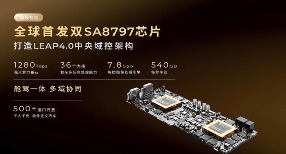 从内饰设计来看,零跑D19延续了零跑C11的设计风格,同时在细节上进行了优化升级。双色中控台造型简洁大气,搭配10.25英寸悬浮式液晶仪表与60英寸AR-HUD抬头显示,使驾驶者获得清晰直观的驾驶信息。车内配置方面,除17.3英寸中控屏外,后排还配备6英寸多功能控制屏和21.4英寸3K电动娱乐屏,满足二、三排乘客的娱乐与操作需求。官方信息显示,零跑D19搭载两颗高通骁龙SA8797芯片,算力高达1280TOPS,可实现端侧大模型座舱和VLA辅助驾驶功能,使整车智能化水平进一步提升。