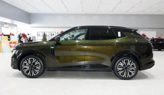 侧面看,领克08 EM-P展现了简洁而流畅的线条。隐藏式车门把手和悬浮式车顶设计让整车更加精致,且不失现代感。车身腰线从前翼子板延伸至尾灯,极具层次感。车身尺寸方面,该车长4825毫米,宽1915毫米,高1665毫米,轴距2848毫米,符合中型SUV的标准尺寸,车内空间十分宽敞。车轮的设计也颇为独特,多种样式的轮毂可供选择,尺寸从19寸至21寸不等,兼顾了外观与实用性。