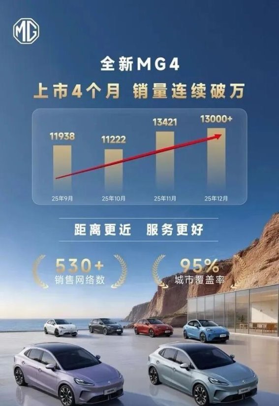 全新MG4的问世,成为了MG品牌反击的核心力量。2025年,MG的整体销量同比增长超过59%,其中新能源车型的销量更是跃升了476%。这一增长并非偶然,而是全新MG4带来的巨大市场反响。自上市以来,MG4迅速获得了消费者的认可,连续四个月单月交付量突破万辆,11月和12月的销量更是创下了1.3万辆的佳绩。MG4的表现,不仅超出了外界的预期,更是为MG的电动化战略注入了强劲的动力。