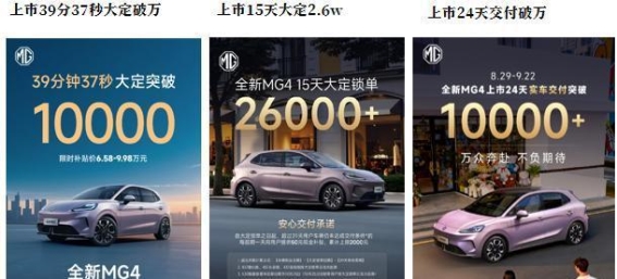 如果说MG的品牌转型依靠全新MG4的突破是至关重要的,那它的市场表现便是这一战略的成功证明。作为一款全新打造的车型,MG4的表现超乎想象,成为MG破局的“王牌”。上市39分37秒,大定订单破万,24天内便交付了超过1万辆,首月大定量达到3.5万辆,连续四个月的月度交付量都破万,到年底累计大定量已经超过8万辆。