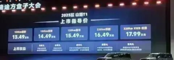 虽然价格一直是消费者购车时的重要考虑因素,但就产品本身而言,捷途山海T1四驱版的性价比表现非常突出。官方指导价区间为13.49-17.99万元,这个价格在同级别车型中相当具有竞争力。对于那些既需要硬派越野性能,又希望享受新能源优势的消费者来说,捷途山海T1四驱版无疑是一个非常值得考虑的选项。