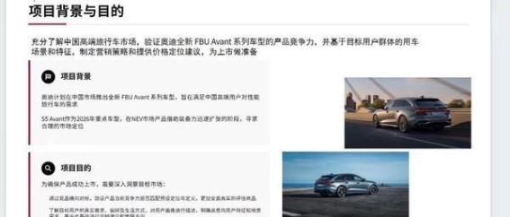 奥迪在中国市场的规划背景十分明确。此次推出的S5 Avant,作为奥迪5系家族中的重要一员,将重点针对中国高端消费者群体。奥迪不仅希望通过这款车满足市场需求,还计划为产品的营销策略和价格定位提供精准的市场建议。奥迪为此专门展开了市场调研,目标是深入了解国内高端用户对性能旅行车的需求,同时评估竞品车型在这一细分市场中的表现。
