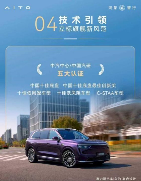 问界M8的成功并非偶然,它诠释了品牌“智慧重塑豪华”的核心理念。问界通过精准洞察用户需求,将前沿的科技与人文关怀融入到产品设计中,最终带来了可以被用户切实感知的高品质出行体验。为验证这一理念的可行性,问界M8不仅获得了C-NCAP(2024版)超五星安全认证、中国汽研《C-AHI中国汽车健康指数》“五星健康车”认证、CA-CAP“白金等级”证书等多个行业权威认证,全面展示了其在安全性、健康性及技术可靠性等方面的卓越表现。