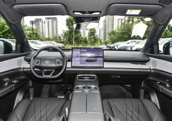 Q07的内饰设计尽显豪华与科技的结合。车内采用了全软包座舱设计,配合双层中控台和256色氛围灯,营造出温馨且高级的驾乘氛围。车内的核心交互区域配备了一块15.4英寸的悬浮中控屏,支持15度偏转功能,搭配12.3英寸的全液晶仪表和AR-HUD,组成了高效的三屏联动系统,让车主操作更加便捷,同时也提升了车辆的科技感。