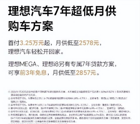 在特斯拉之外,其他新能源汽车厂商也纷纷推出类似的低息或免息购车政策。1月15日,小米汽车推出了YU7“7年低息”购车方案,首付仅需4.99万元起,月供最低可至2593元。理想汽车也宣布了一项7年超低月供购车方案,月供低至2578元。而小鹏汽车则发布了全系7年低息分期购车方案,首付最低仅需15%,月供从1355元起。这一系列政策不仅展现了各大车企在购车方案上的创新,也让消费者在购车时有了更多选择和更低的负担。