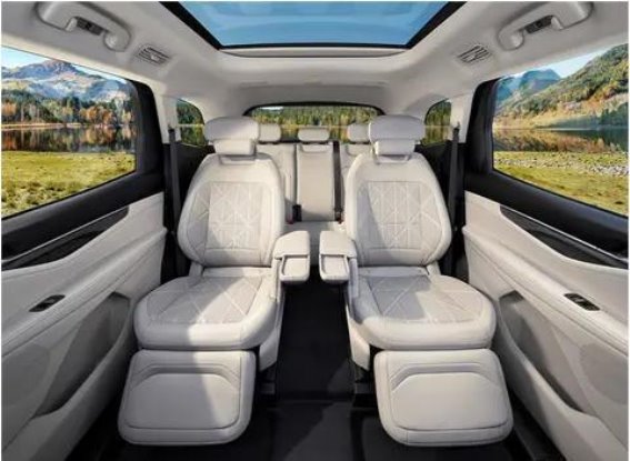 2-2-3布局最大亮点在于第二排的两张独立座椅,这些座椅不仅支持加热、通风,还能调节为零重力模式,让乘坐者完全放松,仿佛在航空头等舱中。并且,这种布局还为中央通道留出了200毫米的空间,成人通过时毫不费力,极大提高了舒适性。2-3-2布局则更加注重实用性,第二排和第三排座椅都能完全放倒,为长途出行提供了超大的储物空间。即使全车满员,后备厢也能提供309升的储物空间,放几个登机箱和年货绰绰有余。