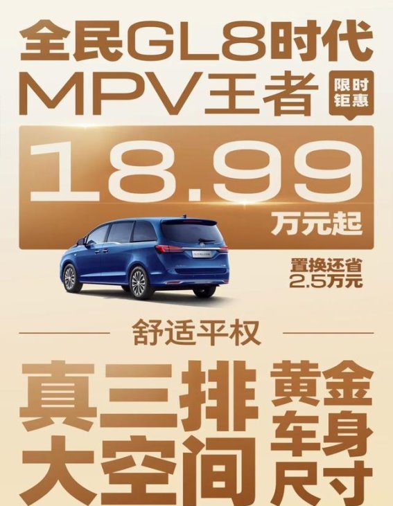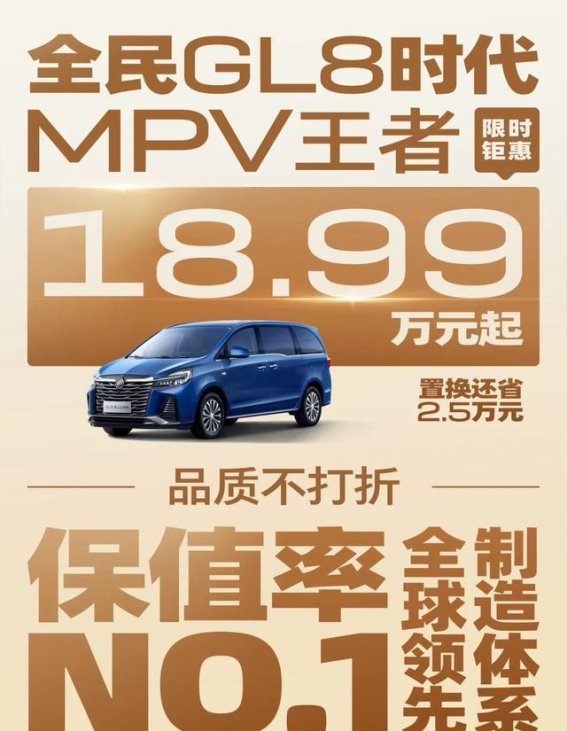 在国内汽车市场,MPV车型逐渐突破传统家庭用车的界限,成为企业与商务人士的首选。作为上汽通用旗下的代表性车型,GL8家族自诞生以来便凭借其卓越的空间布局、豪华的内饰设计和强劲的动力系统,牢牢占据着MPV市场的高端地位。2025年新春,GL8陆上公务舱推出了限时钜惠活动,起售价仅为18.99万元,并附带高达2.5万元的置换优惠。通过一系列诱人的优惠政策,GL8陆上公务舱再次证明了其在MPV市场中的王者地位,成为消费者追求豪华与实用的理想选择。