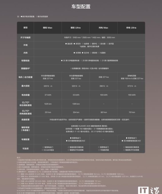 动力系统上,S9T提供增程版和纯电版两种选择。增程版配备37kWh和53.4kWh电池包,CLTC纯电续航最长354公里,综合续航可达1305公里,满足长途驾驶需求。纯电版搭载100kWh电池包,CLTC综合续航801公里,适合日常通勤与城市出行。多样化的动力组合不仅满足不同用户的出行需求,也展现出鸿蒙智行在新能源技术领域的实力和创新能力。