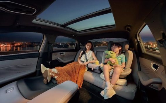 荣威M7 DMH的内饰采用了极具未来感的设计理念,以“移动的舒享之家”为核心理念,全面提升了乘坐的舒适度和智能化水平。车内的最大亮点是全景沙发躺椅,副驾驶座椅可以一键折叠,后排乘客能够享受超长的腿托和更开阔的视野,使得乘坐体验更加舒适。慕斯舒压座椅采用了Ultra Touch极触材质与Surflex®反重力海绵,提供了超凡的舒适感和支撑力,长途出行也能避免疲劳感。
