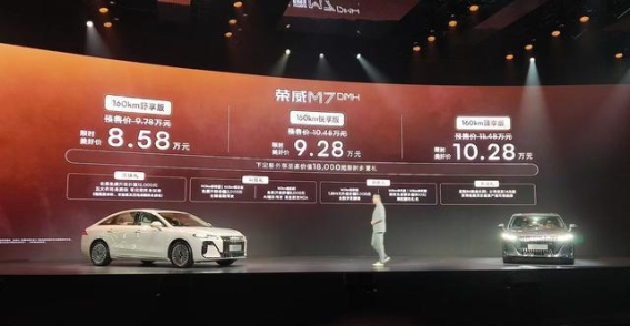 2025年9月17日,荣威品牌正式推出全新中大型插电混动轿车——荣威M7 DMH。新车推出三款配置,官方指导价为9.78-11.48万元。对于在10月31日前完成大定并锁单的用户,荣威提供了限时优惠价格,从8.58万元起,同时赠送价值至高18,000元的购车礼遇,包括五大件终身质保等一系列增值服务。这一价格策略无疑大大降低了中大型插电混动车型的购买门槛,凸显出M7 DMH的高性价比。