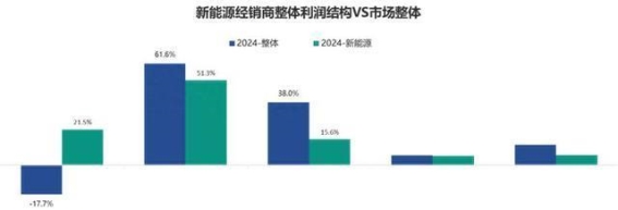 事实上,随着新能源车的崛起,传统豪华品牌在中国市场的销量逐渐下滑。中升集团烟台AITO授权用户中心的销售顾问透露,自从代理问界后,销量的变化是显而易见的,“一天的销量,已经接近过去一周的总和。”这一变化也反映了新能源车在市场中的巨大潜力。中国汽车流通协会发布的2024年汽车经销商生存状况调查报告中指出,新能源独立品牌4S店的毛利贡献在新车销售、售后服务和金融保险方面分别为21.5%、51.3%和15.6%,进一步证明了新能源车在盈利能力方面的优势。