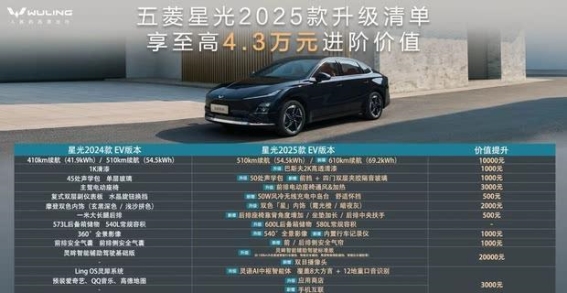 在价格方面,五菱星光2025款推出了限时先享置换活动,购车价格可低至7.68万元,同时还可享受国家和地方的购车补贴,补贴金额可达2万元。这一价格策略让消费者能够以更具吸引力的价格购买到一款性能强大、配置丰富的电动轿车。