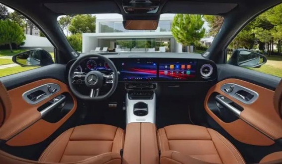 全新GLB的内饰设计同样令人眼前一亮。中控台采用了平直设计,搭配镀铬装饰,提升了整体的豪华感。车内最为突出的是Mercedes Superscreen奔驰超级屏幕,它由10.25英寸的全液晶仪表盘、14英寸的中控屏以及14英寸的副驾娱乐屏组成。三块屏幕的组合为车主提供了更为直观、智能的操作体验,几乎没有物理按键,科技氛围浓厚。