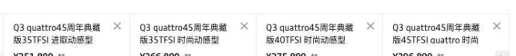 在中国市场,奥迪Q3家族的竞争对手包括宝马X1、凯迪拉克XT4、奔驰GLA等豪华品牌同级车型。这些车型在设计和性能上均有各自的特点,使得消费者在选择时有着较多的考虑空间。根据最新的销售数据显示,2023年11月,奥迪Q3的销量为3098辆,而Q3 Sportback的销量则仅为212辆。这一成绩虽然在同级别车型中处于中等水平,但对于奥迪品牌而言,想要在这个竞争激烈的市场中取得更大突破,或许还需要在终端优惠和促销活动上做出更多的努力。
