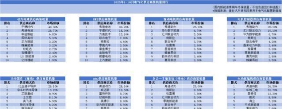 不仅仅在电池领域,比亚迪在驱动电机、电控系统等核心零部件的技术研发上也取得了领先。根据盖世汽车2025年1至10月的数据显示,比亚迪旗下的弗迪电池、弗迪动力等子公司,凭借出色的技术表现,在多个核心零部件领域的装机量排名中稳居前列。这些核心零部件的市场表现,充分证明了比亚迪技术的先进性与市场竞争力,也彰显了其作为全球新能源产业链的重要一环的地位。