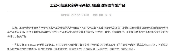 2025年12月20日,全国首块L3级自动驾驶专用号牌“渝AD0001Z”正式交到长安汽车手中。随着这一刻的到来,L3级自动驾驶技术的应用终于从实验室迈出了实地验证的步伐,而这背后却藏着一个值得探讨的问题:为何是长安,成为首个接过这份荣耀的车企?