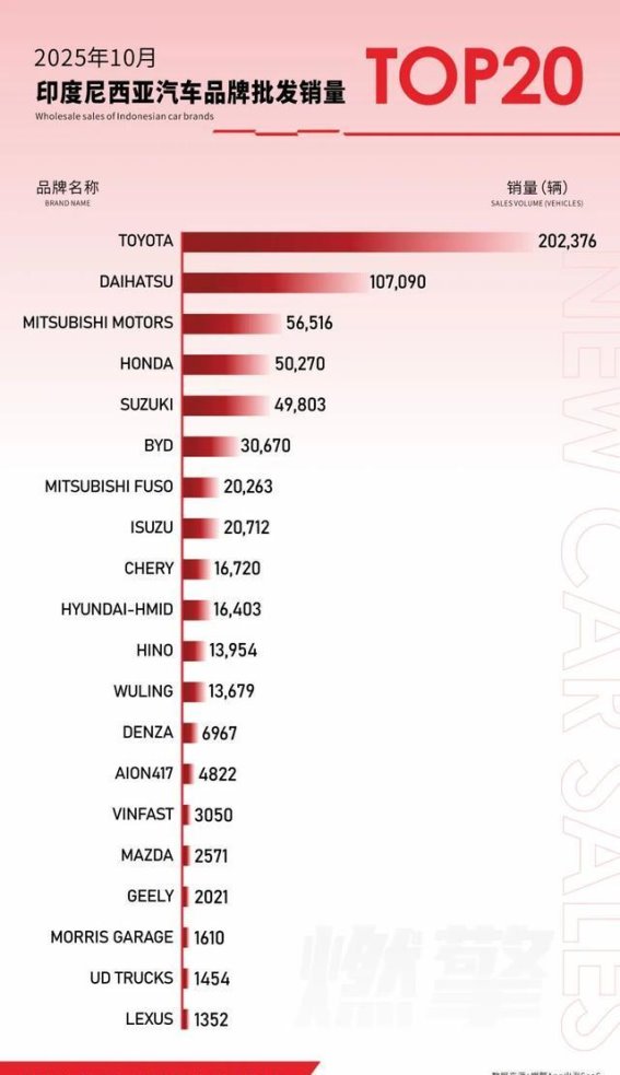2023年10月,印尼汽车品牌销量排名T20榜单的发布为我们展示了当前印尼汽车市场的整体格局。从数据中可以清晰看出,日系品牌依然牢牢占据市场的主导地位,而中国品牌的快速崛起,尤其是在新能源领域的突破,正稳步扩大其在印尼市场的影响力。商用车品牌的稳定表现也为印尼市场的多元化生态注入了活力。